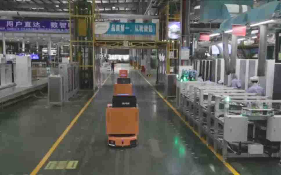 为车载冰箱物流配送打造的智能解决方案,,包含产中物流通过潜伏举升AMR搬运至线边,,产后成品物流智能仓储,,,流程包含产中物流智能齐套入库,,线边安灯叫料AMR智能配送至线边,,,,成品入库、、出库,,,,通过无人堆高车机器人,,,,智能仓储管理替代人工作业管理,,,,实现更高存储、、更高效率、、更具柔性化的解决方案。。。