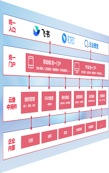 对协作平台提供支持服务,,支持企业应用与协作平台对接,,包含组织同步、、、、消息集成、、待办集成等。。。支持目前主流的协作平台:钉钉、、企微和飞书。。